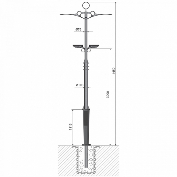 Декоративная опора "Колизей" - 1 - 5,4 предназначена для освещения парков, скверов, набережных, аллей, коттеджных посёлков, прилегающих территорий.