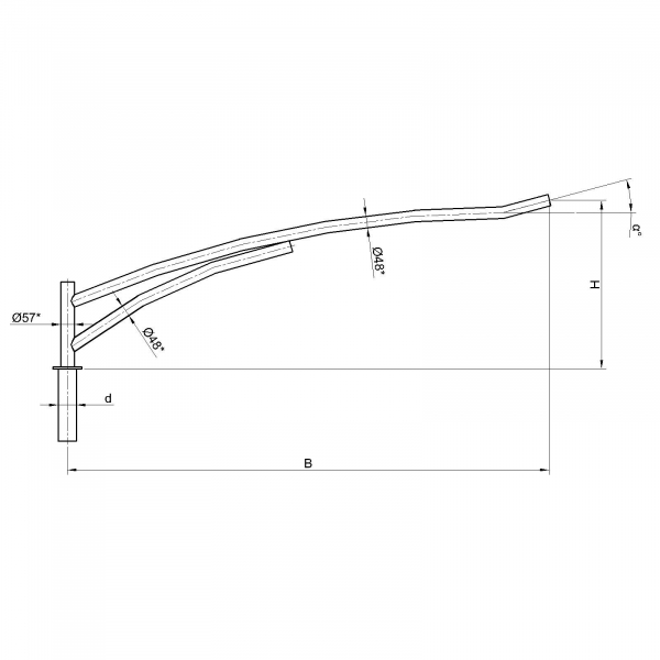 Однорожковые кронштейны К11-0,5-1,2-0-1 предназначен для крепления светильника на трубчатой опоре освещения. Завод опор освещения «Альдекс» изготавливает однорожковые консольные кронштейны из стального проката. Собственное производство позволяет выполнять изделия надлежащего качества и в кратчайшие сроки. Конструкция однорожковых кронштейнов К11-0,5-1,2-0-1. Конструкция консольных однорожковых кронштейнов К11-0,5-1,2-0-1 представляет собой гнутую металлическую трубу заданных размеров.